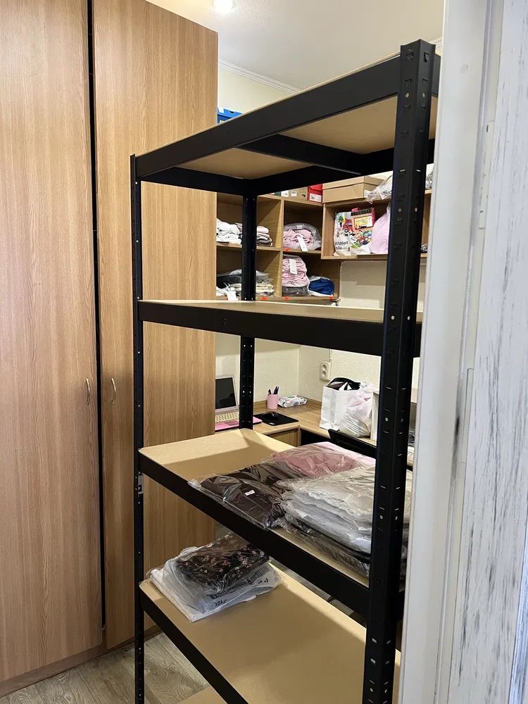Замовила чоловіку в майстерню, але в результаті поставили ще один у кладовку 😅 Виглядає акуратно, не хитається, полиці витримують важкі коробки.